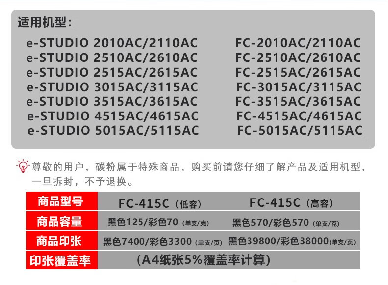 东芝(TOSHIBA)T-FC415C原装墨粉盒2110墨粉盒适用东芝2010东芝2610AC墨盒 四色高容一套(黑+红+黄+青)
